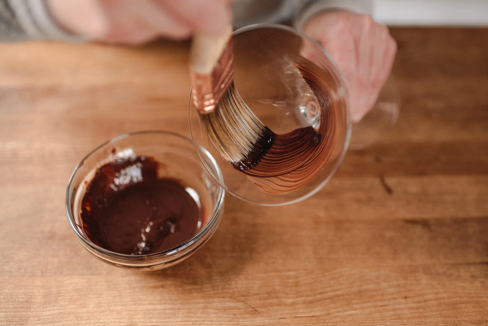Using a clean paintbrush, paint the inside of your martini glasses with the warm magic shell, then place in the freezer to harden.