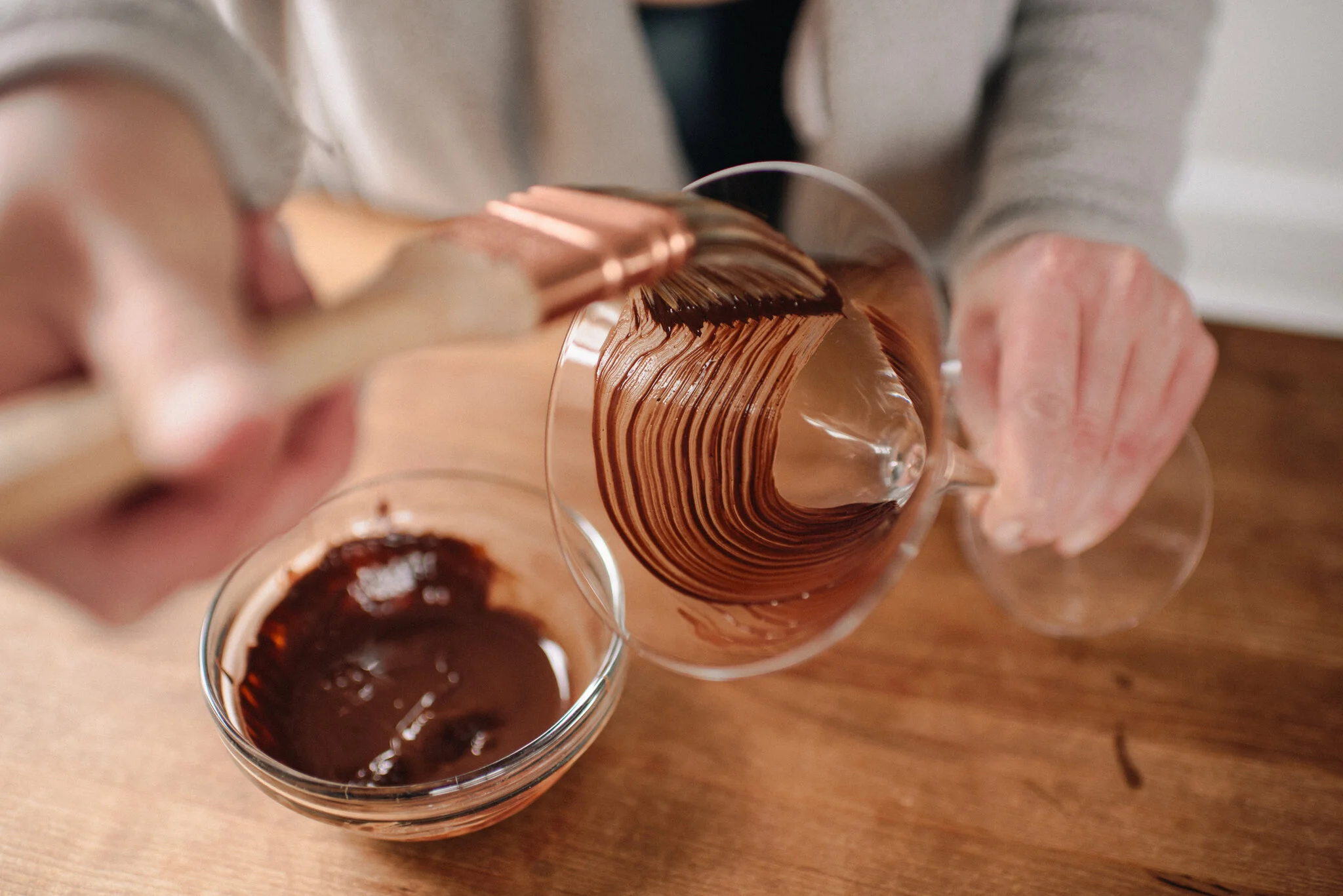 Remember Magic Shell from your childhood days? The magical chocolate sauce that would harden on top of ice cream? You’re going to make a small batch to line the inside of your martini glasses, giving them a chocolate aroma (and of course, to make it look cool!